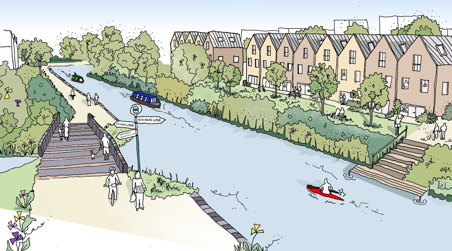 We led a multidisciplinary team, working with Birmingham City Council and Sandwell Metropolitan Borough Council to develop a framework for the Smethwick-Birmingham corridor, a four-kilometre stretch of land that runs through a series of diverse neighbourhoods along the Main Line Canal.