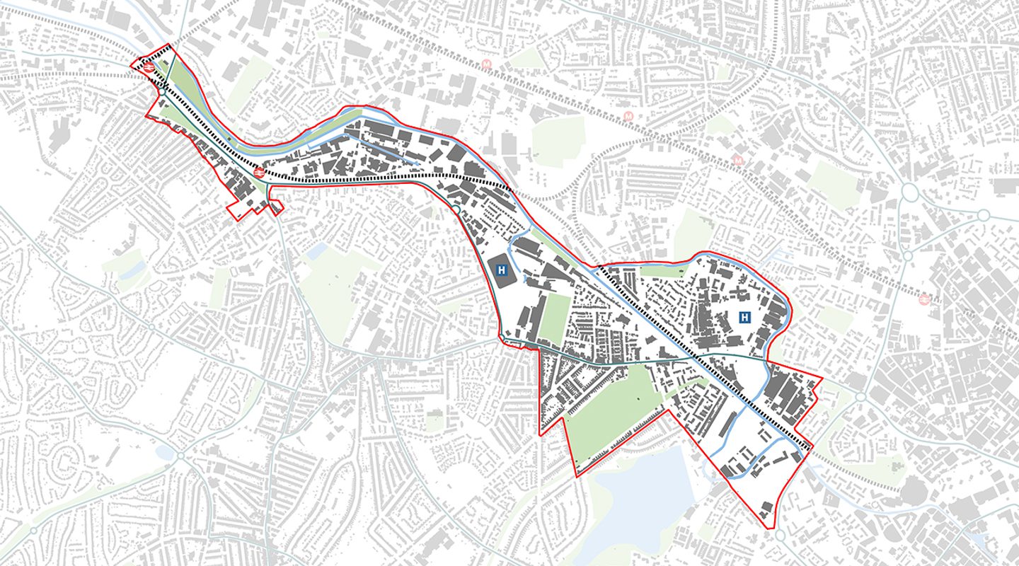Within the heart of the corridor lies the new Midland Metropolitan Hospital, which provides a potential catalyst for dramatic changes which can help to sustain the existing, struggling local centres and creates opportunities for improved open spaces as well as improved and new connections into the Main Line canal for both movement and recreation. A more detailed masterplan was developed for the area around the new hospital by Tibbalds, which has been approved by both councils to be a material consideration in the determination of planning applications. This provides guidance for developers in respect of the aspirations for, and nature of, the development sought.