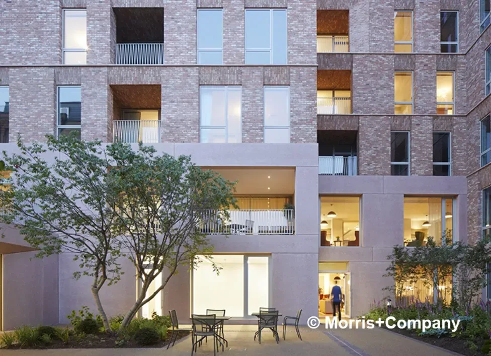 Belle Vue, London Borough of Camden is shortlisted for the Pineapple award for Healthy Homes. Belle Vue is a holistic retirement community of 59 apartments, set within landscaped courts and gardens and with communal – and neighbourhood – facilities. The vision for the site was to deliver a scheme which supports a range of living accommodation and facilities for the care and well-being of older people, including 59 one and two bed extra care apartments, a health and well-being facility, shared communal facilities including a restaurant and café (which is also open to the wider community), a library, communal lounges and activity rooms. For Pegasus Homes with Morris+Company, Architecture PLB, Tibbalds, RISE, ISG, Elliott Wood and Max Fordham.